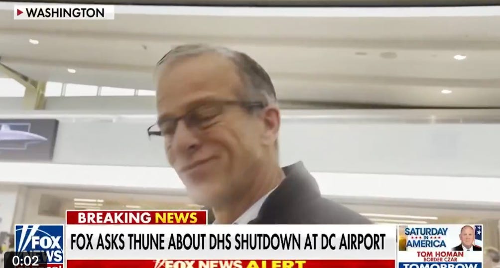 They caught Sen. John Thune on his way out at Reagan Airport in D.C., crossing his fingers a resolution to fund TSA passes the House. Spoiler alert: It didn’t.